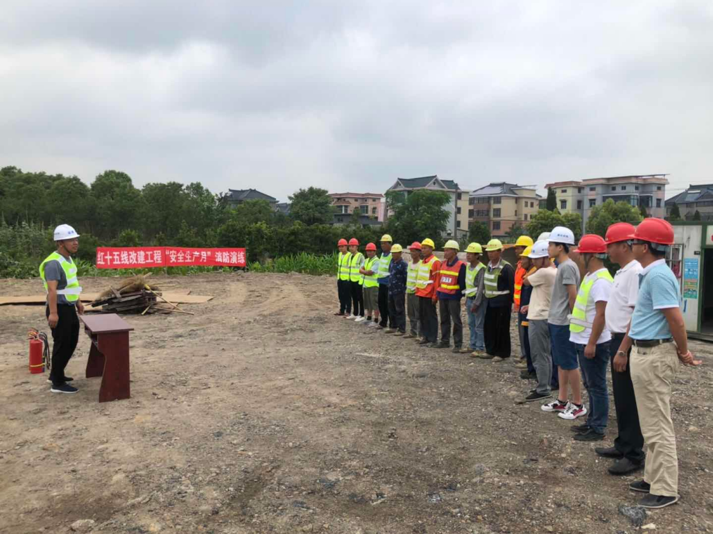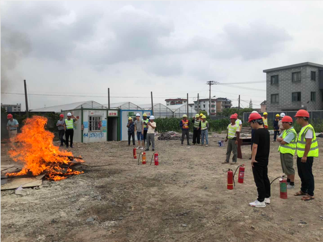 红十五线改建工程二标项目部于2019年6月13日,在预制构件场空地组织了一次消防应急演习。演练目标进一步强化施工作业人员的消防安全教育,提高火灾防控能力和突发事件应变能力,学会正确使用灭火器和各类消防设备设施。