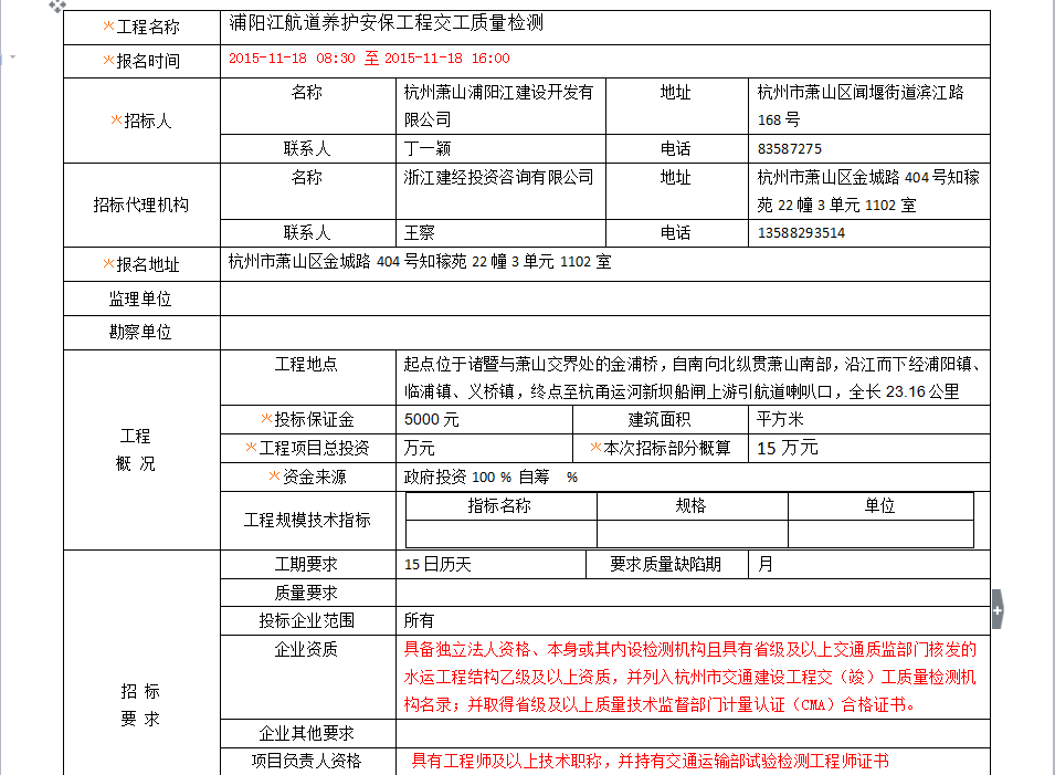 杭州萧山机场公路改建工程萧山段水土保持监测招标公告 2015-10-29