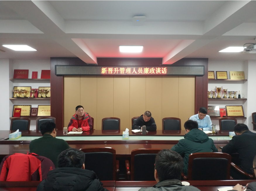 根据交通建管公司党支部工作计划安排,并结合公司年度廉政建设要求,确定召开新晋升管理人员廉政谈话,会议于12月24日下午在公司201会议室举行。由公司党支部书记杨涌、常务副总徐全民列席、副总龚铁峰主持,共参会晋升管理人员14名。