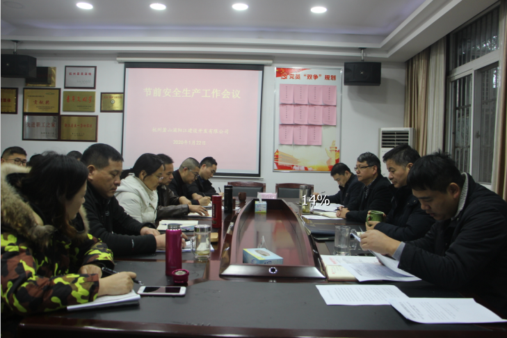 为贯彻集团关于加强安全生产工作的要求,切实将各项安全工作落到实处。1月22日上午,浦阳江开发公司召开2020年节前安全生产工作会议,公司全体人员参加。公司副总经理金清华传达了集团2020年春运动员会徐宁军总经理和祝关翔董事长的讲话精神,并对下阶段安全生产工作进行布置:一要认真领会集团会议精神,落实好各项安全工作;二要在节日期间加强对在建工程现场安全措施落实情况的检查;三是关注恶劣天气,落实防冻抗雪措施。随后,公司总经理韩国海与各部室负责人签订了2020年度安全生产暨综合治理目标管理责任书。并针对2020年度安全生产工作提出了三点要求:一是要认清形势,切实提高对安全生产工作的认识。二是要真抓实干,切实围绕重源头、强管理、抓整治、扎实做好各项安全工作。三是要担当作为,切实强化责任担当推动工作任务落实,抓好安全工作。