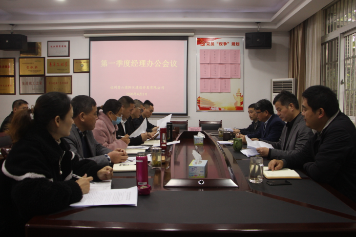 4月3日,浦阳江开发公司召开第一季度经理办公会议,总结公司一季度工作成绩和经验,分析工作中存在的不足,明确下阶段的工作任务和发展目标,公司班子成员、部门负责人、工青妇负责人参加了本次会议。会上,公司党政负责人分别与各部室签订了经营管理目标责任书和党风廉政建设责任书,各部室和工青妇负责人分别汇报了一季度工作推进情况及下阶段工作思路,班子领导对工作方向进行布置和安排。最后,公司总经理韩国海从抗疫冲在前、复工做在前、促推进不放松、党建廉政有抓手四方面对公司上阶段工作表示了的肯定,对公司当前存在的问题进行分析,并提出五点要求,一是攻坚项目建设要大力推进,二是促抓经济发展转好型,三是加强企业管理带好队伍,四是查漏补缺减能增效,五是整改巡查问题完善制度。