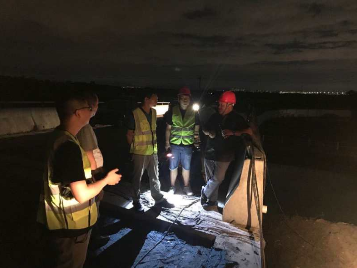7月8日新安江水库开启历史上首次9孔泄洪。洪水一路往东蔓延已影响萧山区域,对交投集团建管公司在建工程:03省道萧山义桥至楼塔段改建工程、萧山浦阳江治理工程三期,杭州港萧山港区义桥作业区工程(第二部分)三个项目有了不同程度的影响,建管公司领导于7月7日紧急召开防汛工作紧急部署会,奔赴一线参与指导防汛工作。连夜全线推进隐患排查,对泄洪后有可能损毁的浙东引水处、永兴河桥、岸线堤顶及低洼地段等地进行24小时巡防,并安排挖机对低处筑坝加高,组织低洼处人员撤离民工宿舍,防止落水意外等事件发生。同时对沿江道路、桥梁的水位进行实时监测,确保第一时间了解险情。