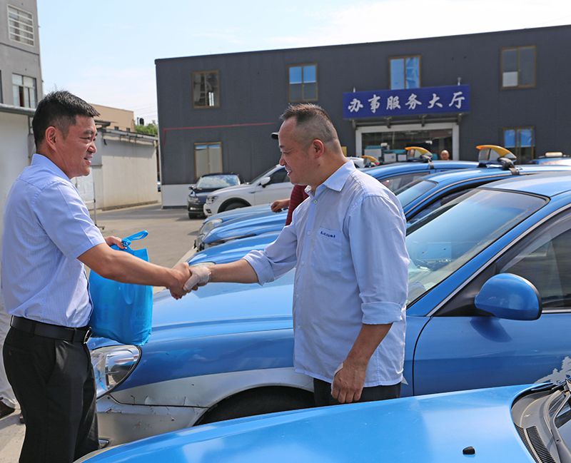 集团领导冒着酷暑为一线出租车驾驶员送上防暑降温慰问品,对驾驶员在高温天气下依然坚守岗位,为城市交通作出的贡献表示感谢,并叮嘱驾驶员要及时做好防暑降温措施,注意劳逸结合,拒绝疲劳驾驶,继续做好相关防疫工作,始终把安全放在第一位,确保高温天气下的行车安全。