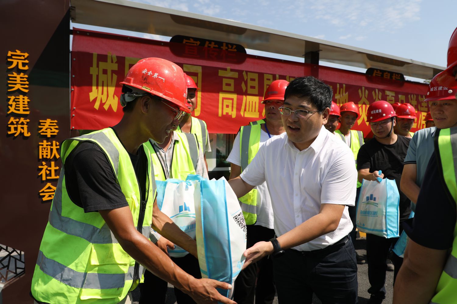 为进一步做好今年夏季一线劳动保护和防暑降温工作,8月11日,集团党委副书记、总经理徐宁军带队赴各在建项目现场,向高温下奋战在一线的建设者表示慰问。
