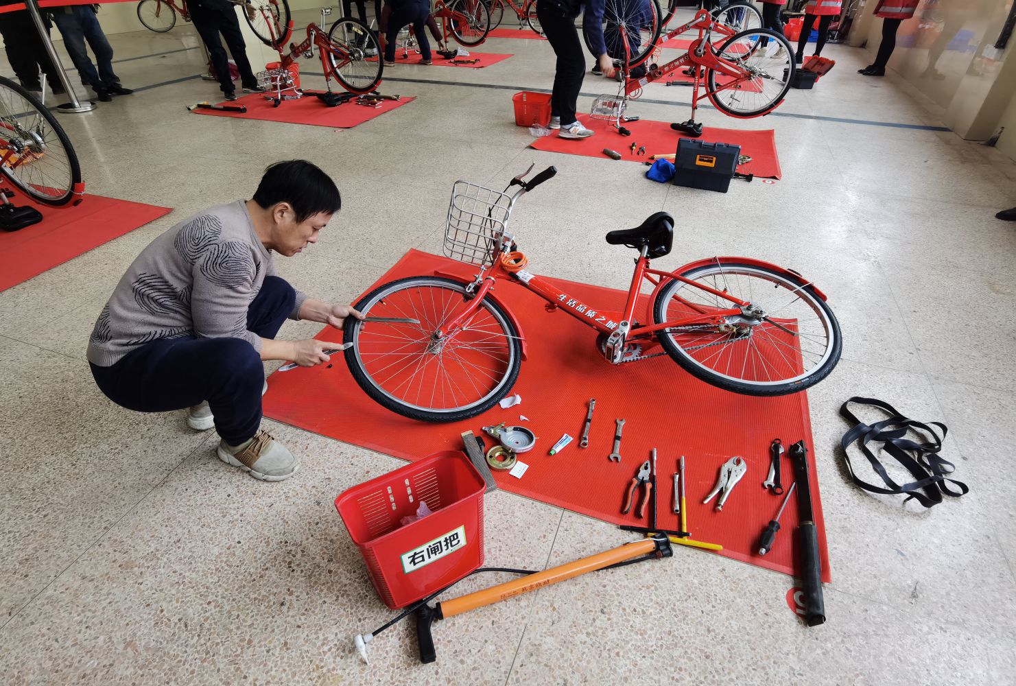 此次比赛共汇集了来自杭州公共自行车城东、城南、城西、城北、钱塘及萧山、余杭公共自行车的七支精英队伍,设置了自行车维修、系统维修、车辆调度、巡查服务四大类项目,考察了选手对维修工艺规程的熟练度和操作规范性。