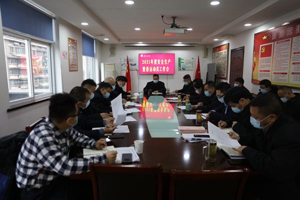 会议一共六项议程。由分管副总经理王建庆作《2020年度安全生产工作总结》,副总经理潘国华传达上级有关春运工作文件精神,副总经理周楚军传达公司《2021年春运工作实施方案》。会上,生产单位代表作春运工作表态发言,同时与公司签订《2021年度安全生产暨综合治理目标管理责任书》、《春运安全管理目标责任书》。