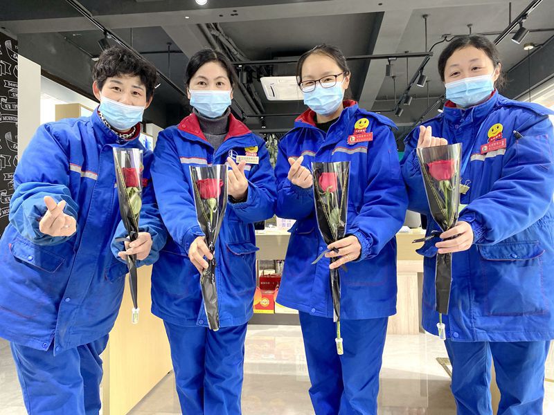 收到鲜花的女顾客们脸上洋溢着开心的笑容并向加油员们表达感谢,“一大早收到这么好看的玫瑰花,心情瞬间变得特别好,谢谢你们,有心了,也祝你们节日快乐”。“赠人玫瑰手有余香”,一线的女员工们用自己的真诚服务换来顾客的满意和感恩。她们对自己的岗位工作感到无比充实和快乐,也同样为他人带去了便捷和欢乐。