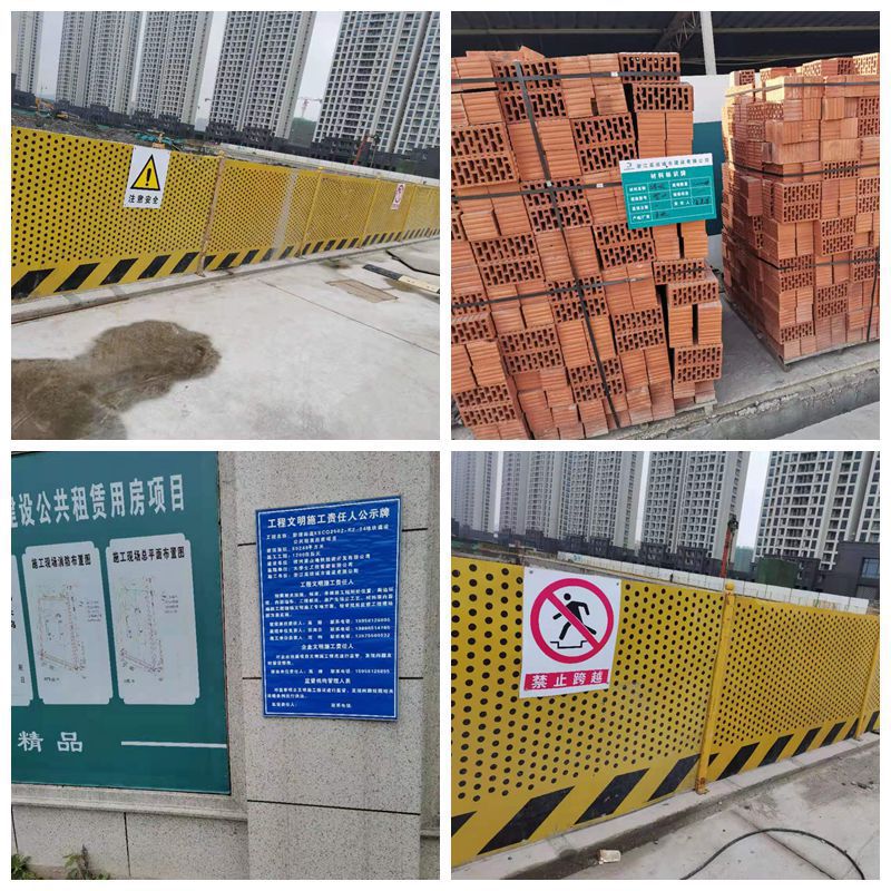 一、狠抓扬尘管控。对非施工作业的裸露地面、易扬尘材料、空置24小时以上的土方进行覆盖;现场设置喷淋、雾炮等降尘设备,安装扬尘在线监测设施并保持在线;土方开挖、回填、现场破拆、切割作业,应采用洒水等湿法作业;施工现场主要道路、材料堆放和加工场地硬化到位;二、建筑工地围挡规范。围挡全封闭、无破损、有序设置;围挡周边保持整洁;按要求制作文明施工公示牌,并在主要出入口外围醒目位置上墙公示。三、建筑工地出入口管理规范。工地出入口硬化到位,主出入口50米范围内保持洁化,无碎砖乱石,无明显污泥、污水;项目大门口设置冲洗装置,出土阶段必须安装车辆自动冲洗装置,工程渣土车、混凝土搅拌车等物料运输车辆须冲洗干净离场。