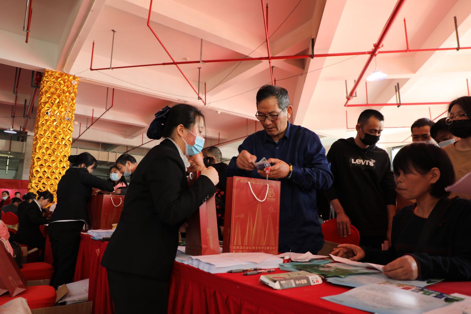 交房现场红色气球拱门,舞龙腰鼓轮番上演,一片喜气洋洋,“欢迎回家”的标语让人倍感亲切。沿着指示牌来到交房中心,久别重逢的老邻居们在等候区高兴地拉着家常。