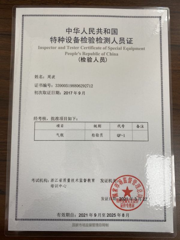 4 月 12 日—4 月 15 日,浙江省质量技术监督教育培训中心根据《特种设备检验人员考核规则》的要求,按照 2021 年度特种设备检验人员(检验师、检验员) 审核换证工作的安排,在杭州举办了“2021 年度第一期气瓶检验人员换证培训班”,长运公司周波、黄赞钟、李灿刚等三位同志参加了本次气瓶检验人员换证培训班的考核认证,经过为期四天紧张的培训工作和严格的认证考核。公司周波、黄赞钟、李灿刚顺利通过气瓶检验人员考核,为特种设备公司业务开展夯实了技术基石。