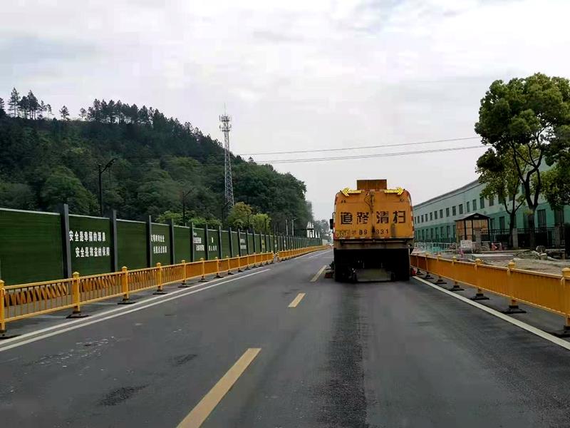 施工单位路桥工程公司根据边通车边施工的交通组织方案,对道路进行半幅封闭施工。在管控施工质量的同时,重视工程施工的标准化管理,对施工路段进行围挡设置并每日开启喷淋系统,应用雾泡机、扬尘监测系统控制控制扬尘,并对裸土实行全覆盖,安排洒水车、扫地车不定期对施工区域进行洒扫清洗,实行文明施工、安全施工,确保10月底完成全部施工任务。