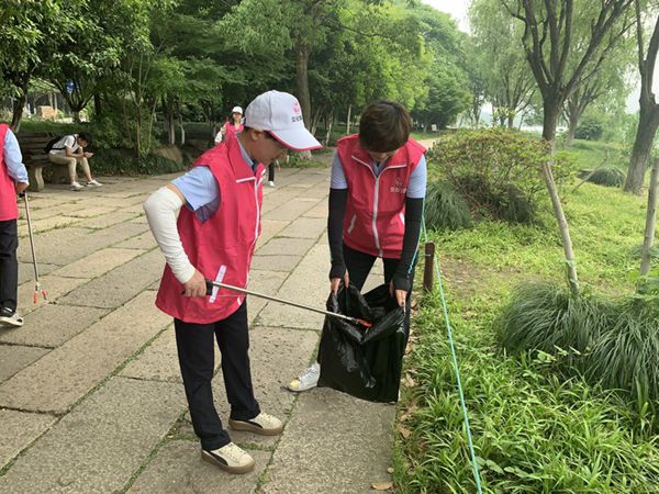 此次活动由两个部分组成,首先女同胞们从湘湖城山广场出发开始捡垃圾活动。大家一边饱览湘湖美景,一边对游人遗弃在路旁的饮料瓶、食品包装袋、烟头、纸屑等垃圾进行了捡拾。经过2个小时的捡拾,大家手里的垃圾袋,都装了不少“战利品”。随后向游人发放“倡议书”宣传“五水共治”环保理念。