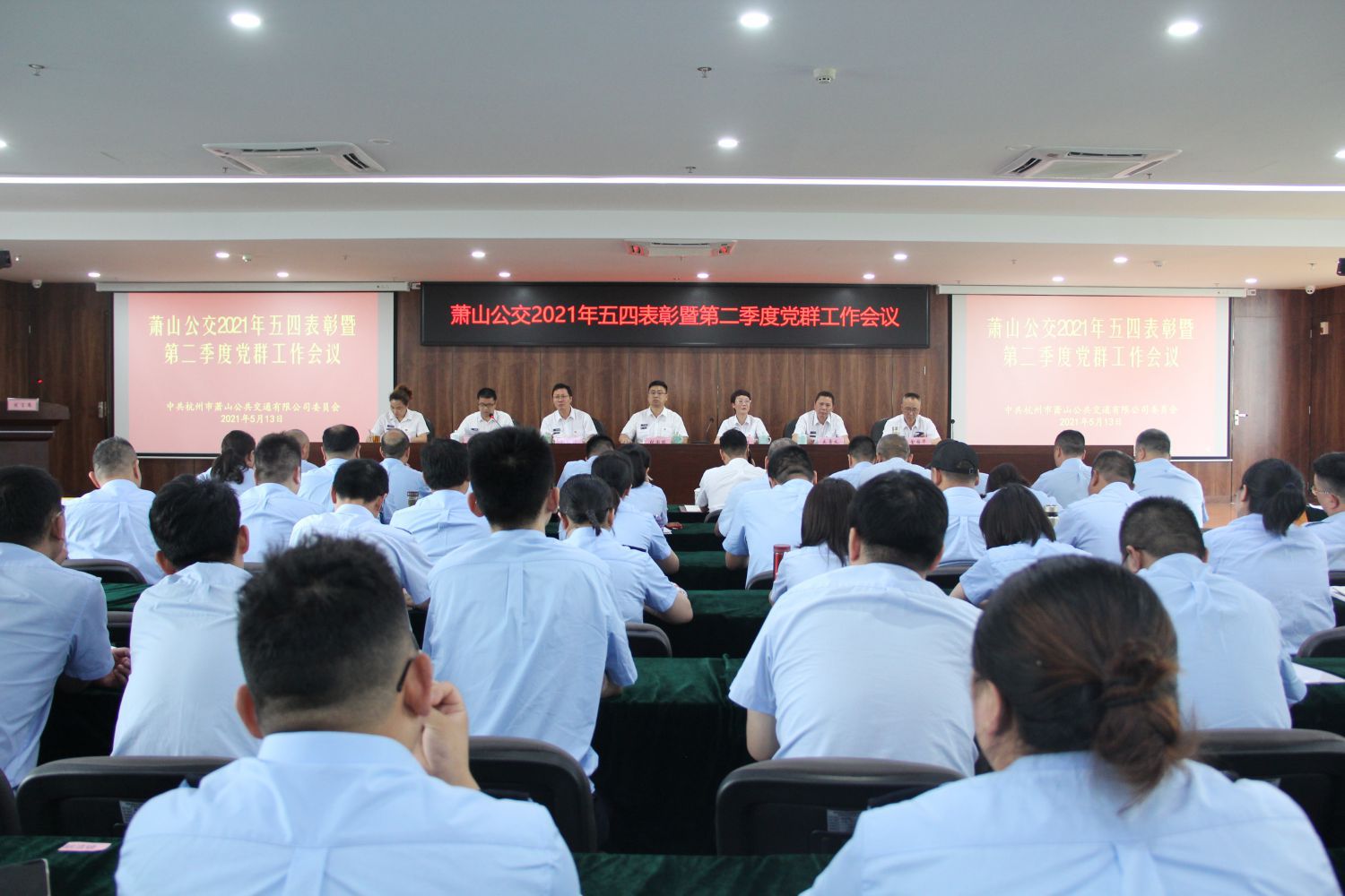 为进一步表彰先进、树立典型,同时进一步推进“党建带团建”工作,5月13日下午,萧山公交在总部会议室召开2021年五四表彰暨第二季度党群工作会议。公司党委班子成员、全体中层干部、各党支部书记与委员、各分工会主席、各团支部书记与委员以及2020年度各类团先进代表参会,会议由副总经理韩兴良主持。