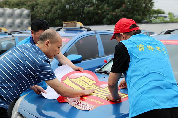 启动仪式上,公司工作人员与驾驶员一起为助考出租车张贴了醒目的“爱心助考”车贴,并系上了红丝带,方便考生辨识。