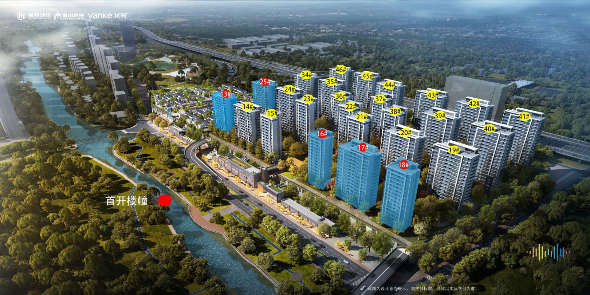 该项目是萧山的首座天空之城,由杭州地铁、萧山地铁投资公司与万科杭州合作打造。项目位于萧山新塘街道彩虹大道和03省道交汇处,是地铁5号线姑娘桥站上盖项目,设置在约15米盖板上,用地面积约11.5万㎡,总建筑面积约28万㎡。