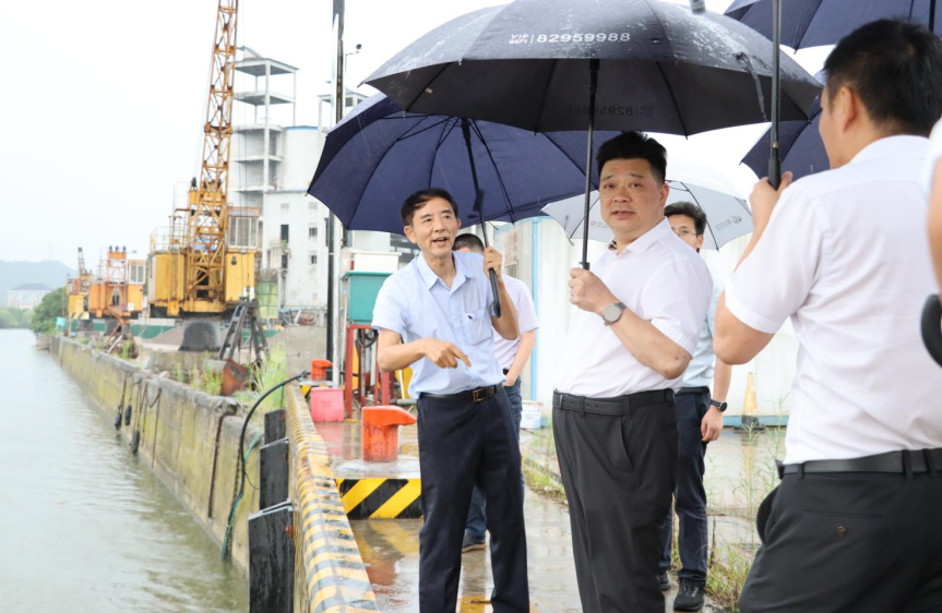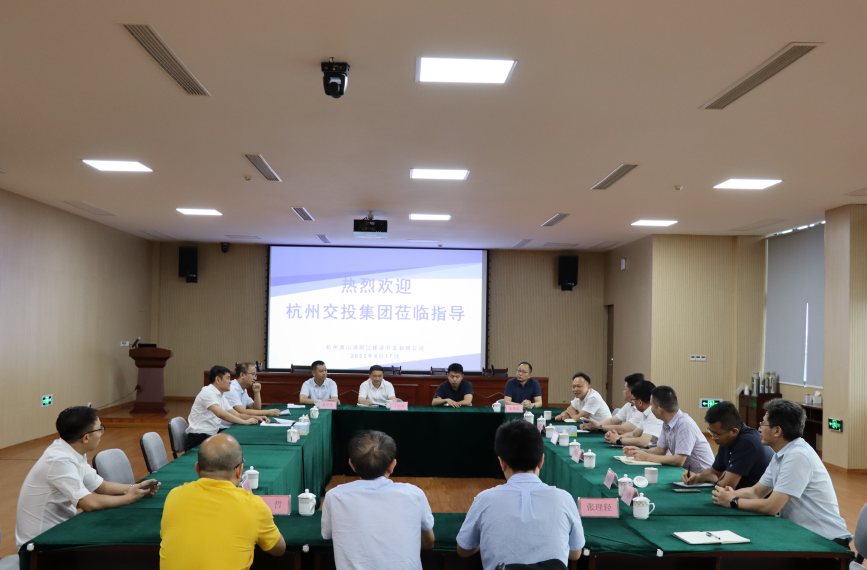 8月17日下午,杭州市交投集团党委书记、董事长章舜年、交通部公路科研所副院长李万恒、四川新路桥公司董事长刘国建一行对萧山交投集团进行调研考察。集团党委副书记、总经理韩朋朋,副总经理钟波及浦阳江开发公司总经理朱华生等陪同。
