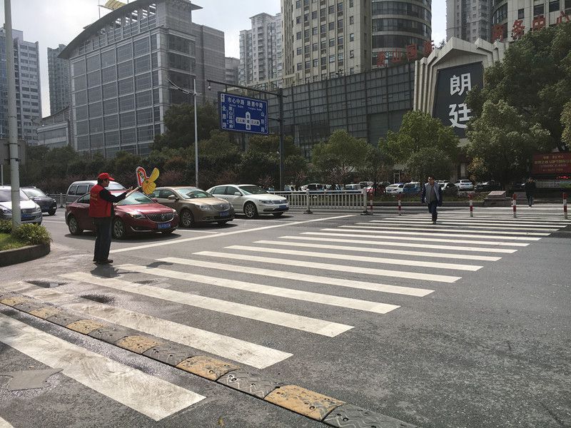 为积极响应集团 “礼让斑马线 文明出行”活动,3月21日至4月5日,交投出租车创优车队成员前往金城路颐高数码广场“无灯控”斑马前近开展劝导活动。该斑马线附近人流和车流异常密集,交投出租车成员们忙着“左顾右看”,集中精力注意着准备横穿斑马线的行人和过往的车辆。