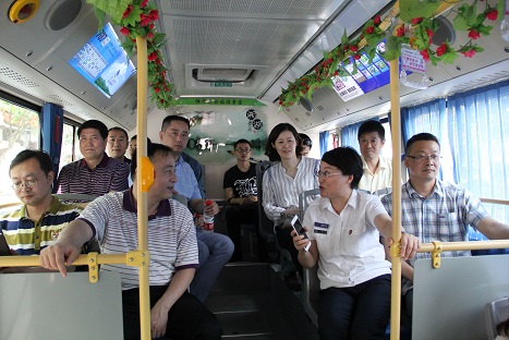 领导们首先听取了707路专线的情况汇报,对专线的发展经过和建设成果给予充分肯定;随后乘坐707巾帼文明号公交车体验湘湖专线服务,导乘员向领导们介绍了线路途经的标志性建筑和景点,使他们对707专线的优势和特色有了深刻感受,并对此次参观给予较高评价。