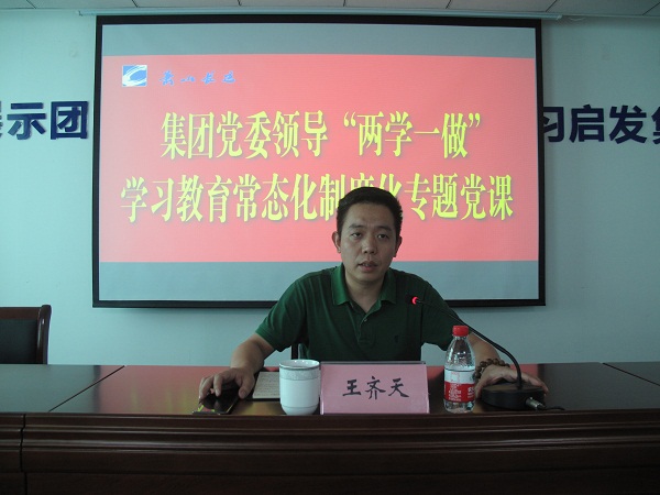 全体与会党员还聆听了集团党委委员、副总经理王齐天作的“两学一做”学习教育常态化制度化专题党课。王齐天用浅显易懂的语言对“两学一做”学习教育的内容和精神作了深刻解读,要求全体党员一要做到抓问题,不瞒不避,二要做到及时修改、刷新,三要抓在日常,严在经常。同时他还结合企业经营实际提出了“做合格党员之前先做人”的理念,指出企业最核心的资产是人,希望每位员工都能做到简单、正直、无私、坚忍。