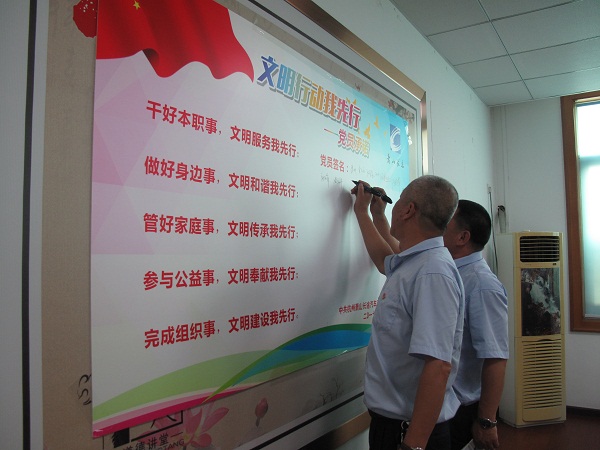 最后,全体党员参与了“文明行动我先行”签名活动,承诺带头做好文明表率,主动发挥党员先锋模范作用。