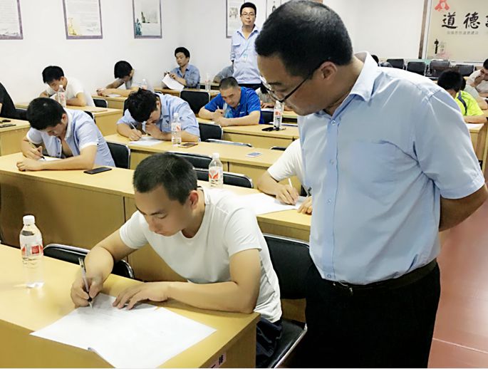 为积极做好萧山区2017年度大客车维修技能比武参赛人员的选拔工作,8月3日晚,长运修理分公司组织维修技术人员在西站二楼会议室开展了技术比武的理论摸底考试。公司副总经理、修理分公司经理潘国华现场亲自进行了观摩和指导。本次技术比武理论摸底考试以机修工种为主,共计34名员工参加。接下来,修理分公司还将继续进行实践操作考试的选拔,符合条件的员工将正式参加萧山区2017年度大客车维修技能的比武。