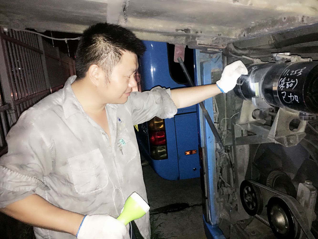 8月8日、8月9日晚间,长运修理分公司组织金山车间技术骨干对所承修的265辆公交车进行车容车貌大检查,面对此次时间紧、任务重的检查工作,维修人员们重点加强了车辆自编号、电子路牌、边门保险、车身标识照顾专座、安全锤标识等项目的排查。在检查过程中,突如其来的暴雨也让维修人员们措手不及,本就被汗水湿透了的衣襟又被暴雨淋的大汗淋漓,但大家都克服了困难与不便,坚持圆满的完成此次车容车貌的检查工作,积极迎接杭州市全国文明城市的复评检查。