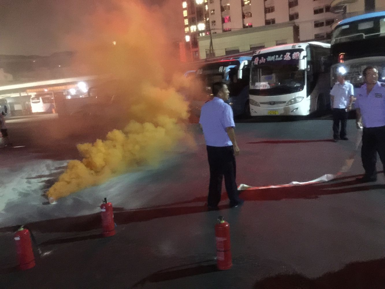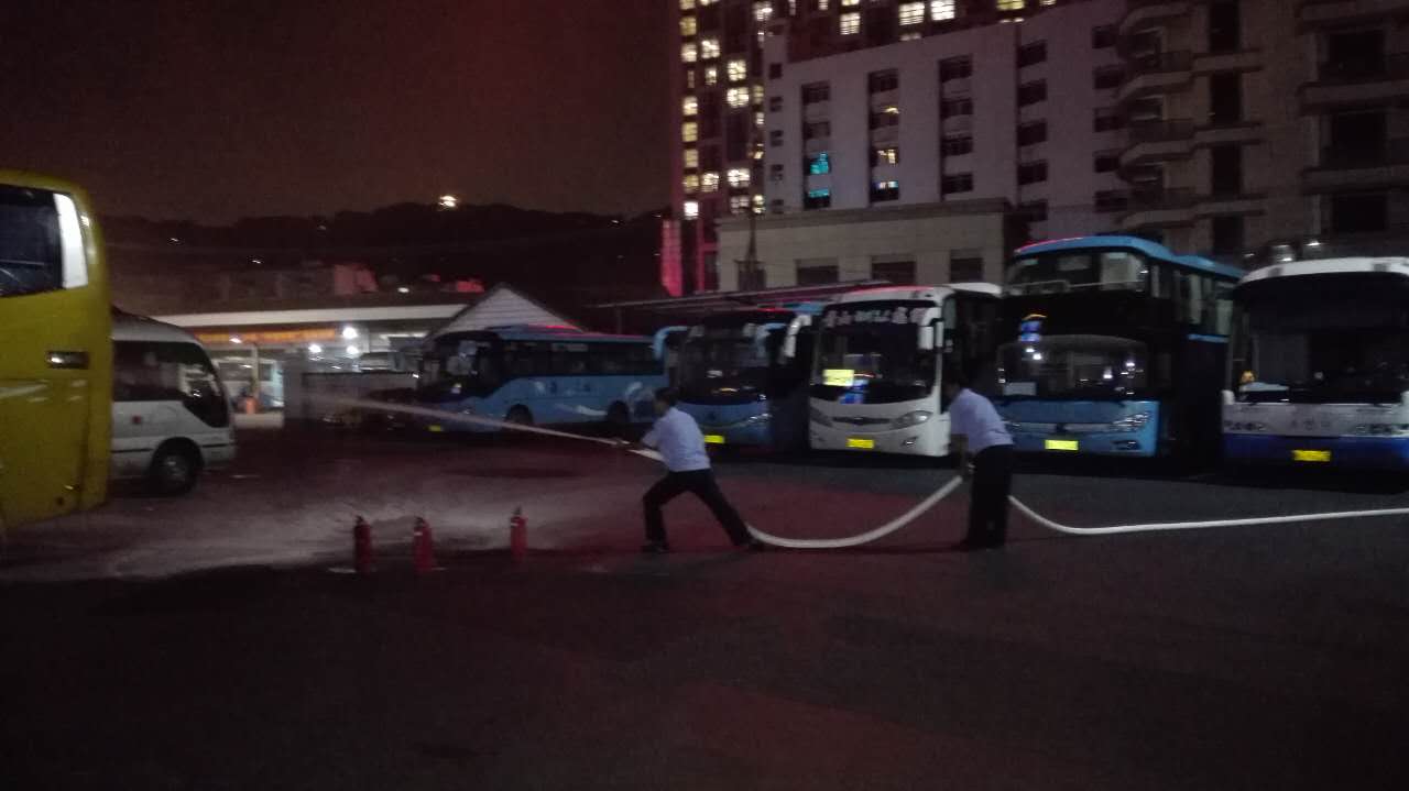 为进一步配合集团做好十九大前期维稳安保工作,落实责任主体,强化安全红线,8月21日晚7时,长运公司物业管理部会同萧然保安公司在总站站场开展了站场消防应急演练。本次演练过程从保安人员巡逻时发现停车场一辆客车起火到按各个流程进行灭火扑救,全程时长为6分15秒,各保安分工明确,配合到位,动作流程娴熟。但此次演练过程中也存在一些不足,因保安巡逻时未带对讲机,致使第一时间发现火情时不能用对讲机通知其他值班保安,采用迅速跑回去通知形式,时间上有所浪费。此次消防应急演练旨在进一步提升保安人员应对突发事件的处置能力,处置流程的到位程度。