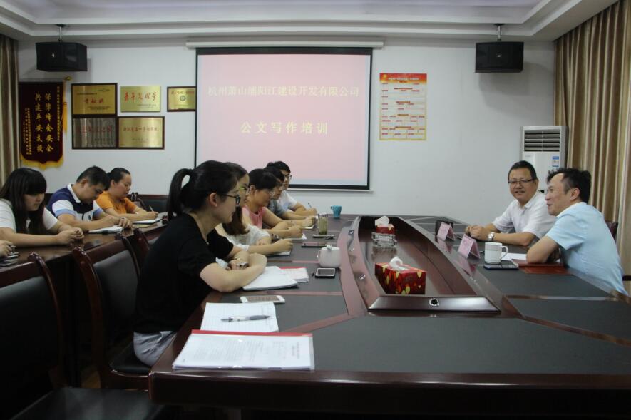 为进一步提高干部员工队伍的公文写作能力,8月16日,浦阳江开发公司邀请集团企划监督部经理李迪鸣为公司各部室从事文字工作相关人员进行培训,培训中,李经理详细讲解了行政公文的类型及使用情况,并回答了公司员工在实际工作中遇到的问题。