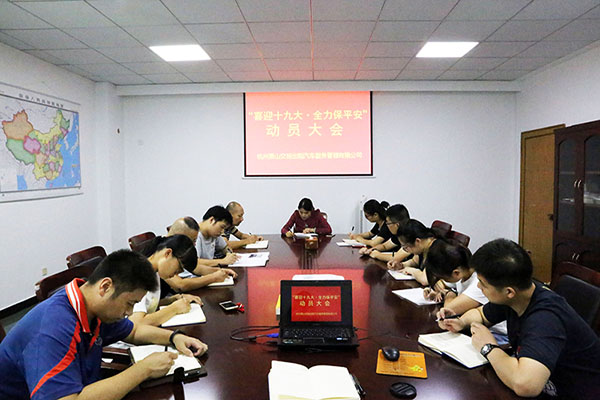为迎接党的十九大顺利召开,切实做好文明城市复评迎检工作。8月23日上午,交投出租车公司召开“喜迎十九大,全力保平安”动员大会。 会上,公司执行董事、总经理王建维首先传达了集团“喜迎十九大 全力保平安”动员大会精神。针对涉及交投出租车公司需要重点做好的相关工作要求,公司执行董事、总经理王建维强调五点:一是加强出租车人员的文明服务培训教育工作;二是转变工作方式,以服务为导向,多倾听驾驶员的诉求;三是加强车容车貌检查,有计划的对车辆的外观和内饰的整洁度进行检查;四加强安全隐患排查,尤其是对车辆检查,办公区域的消防检查,发现问题及时整改落实并如实上报;五是积极开展应急预案演练,提高全员的安全意识和突发事件的应急处置能力;六是要求全体员工从自身做起,从小事做起,做到文明出行,文明行车,带头做好全国文明城市复评迎检工作。