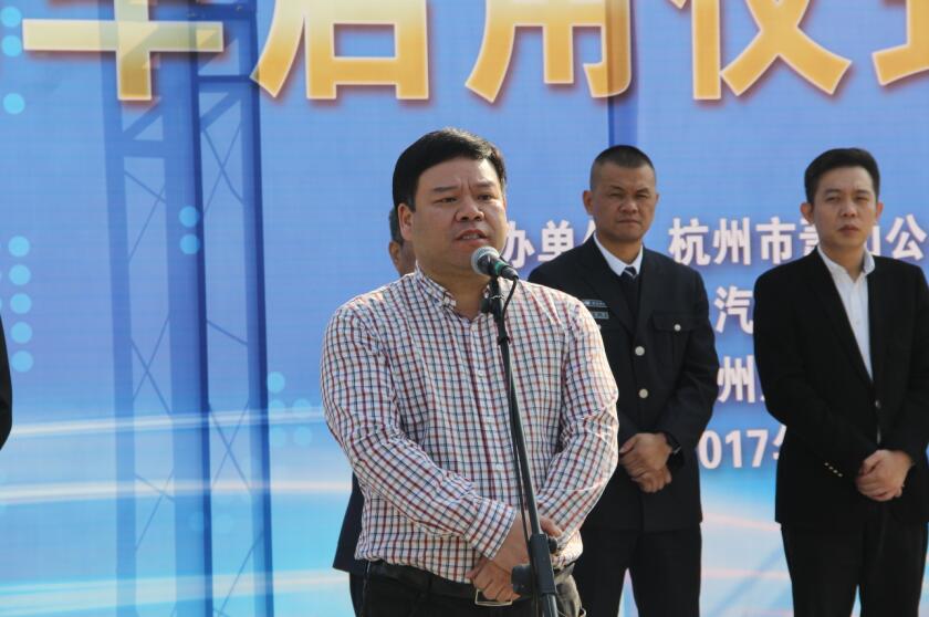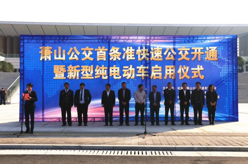 11月3日上午9时,萧山公交首条准快速公交开通暨新型纯电动车启用仪式在火车南站西广场举行。区政府办公室副主任,区交通运输局党委书记、局长姜纪呈,区交投集团党委书记、董事长祝关翔,杭州公交集团党委副书记、副总经理、萧山公交董事长翁军,区交投集团党委委员、副总经理王齐天,区交通运输局运管科科长冯晓娜,杭州公交集团计划财务部经理陆梨华,万向新能源有限公司总经理陈军,杭州晟越商业经营管理有限公司副总经理杨振,以及公司全体班子领导、干部职工代表参加了开通仪式。仪式由公司党委书记王黎洪主持。