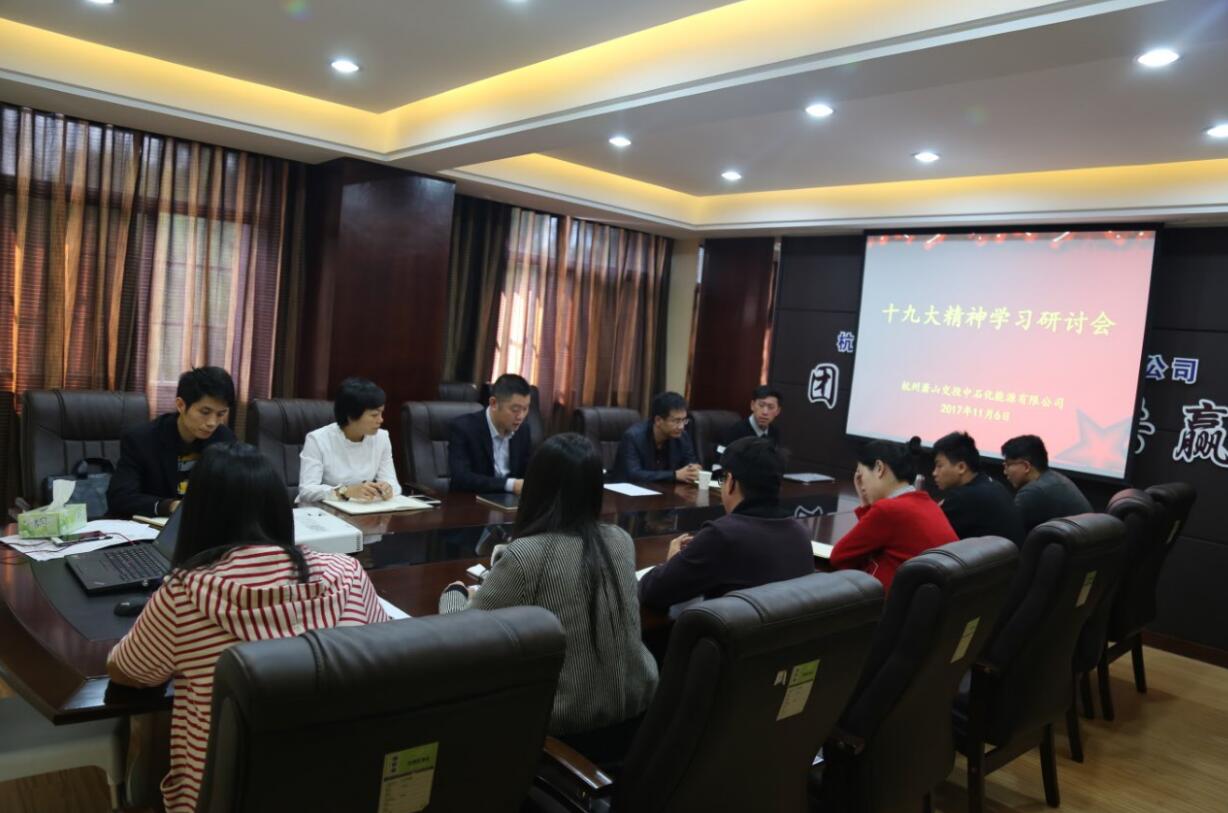 为进一步学习贯彻党的十九大会议精神,继召开十九大精神学习辅导会后,11月6日下午,公司在二楼会议室组织召开了一次十九大精神学习研讨会,会议由公司董事长赵宇主持,公司全体行政人员参加了会议。