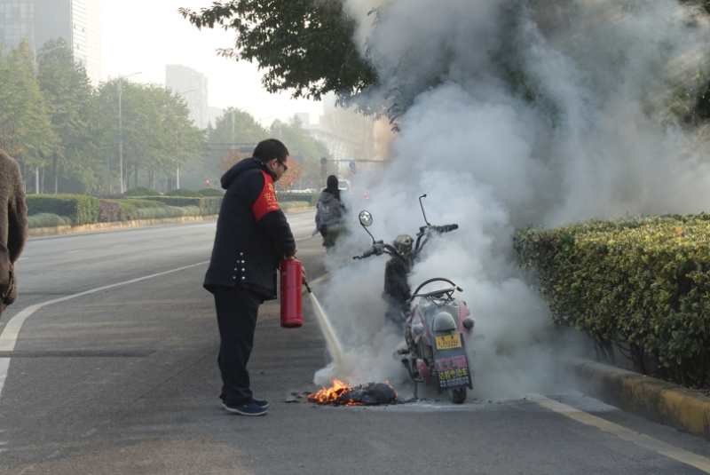 12月6 日上午8时31分,公交公司四车队269路司机韩华军在驾驶(编号17-7719)车辆经过滨安路与江虹路交叉口时,发现路边有一辆电动自行车起火,眼看火势越来越大,韩师傅赶紧靠边停好车,跟车内乘客简短的解释后,带着车内配备的灭火器跑过去灭火。依靠平时消防培训掌握的知识,很快就把火势扑灭,在确认起火车辆没有复燃迹象后,韩师傅才回到车上继续营运。