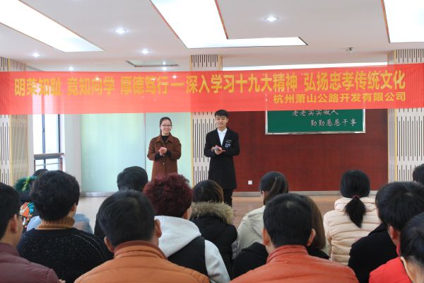 本次活动忠孝主题为“明荣知耻 竞知向学 厚德笃行——深入学习十九大精神 弘扬忠孝传统文化”。活动通过文明礼仪操展示、“献礼十九大”诗朗诵、说说心里话、宪法知识竞猜等环节,展现了员工踏实工作、爱岗敬业、忠诚企业、奉献社会的精神面貌。