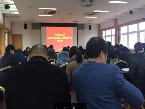 为加强落实防渗改造相关工作要求,确保加油站防渗池改造项目的顺利开展,1月5日,交投能源公司建设发展部、安全营运部成员及所属建盈加油站站长前往杭州,参加由中石化杭州石油公司组织的防渗池改造管理培训。 本次培训由中石化经验丰富的基建团队负责授课,主要围绕高处作业、受限空间、临时用电、双层管道、双层油罐以及加油站防渗池改造施工等方面进行讲解,有助于进一步提升改造施工现场监督人员的业务能力,提高防渗池改造工作效率。
