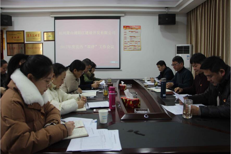 1月15日上午,浦阳江开发公司党支部召开2017年度党内“双评”工作会议。支部全体党员、群众代表参加会议。会议由支部委员、副总经理丁乐冬主持。会上,丁总传达了《关于在“两学一做”学习教育中广泛开展向王一成同志学习的通知》精神。党支部书记王光明为全体与会人员上党课,并作“双评”工作动员,同时报告一年来的工作情况,提出下一年度工作思路和计划。王书记结合2017年度“双评”工作会议提出三点要求:一要加强学习,用理论武装头脑;二要办事公道,让权力在阳光下运行;三要提高认识,理解双评工作要求。随后,支部全体党员对2017年工作作自我小结,并对2018年工作作出公开承诺。最后,支部全体党员、群众代表对党组织及党员进行民主评议。