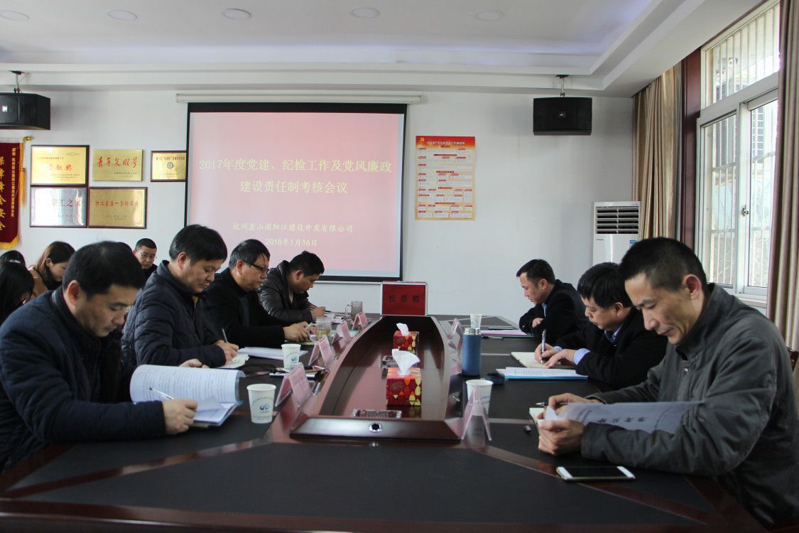 1月16日下午,区交投集团党委副书记、副总经理虞国灿带领检查组对浦阳江开发公司2017年度党建、纪检工作及党风廉政建设责任制落实情况进行检查考核。公司领导班子、中层干部及党员群众代表参加会议,会议由集团党群工作部经理李迪鸣主持。