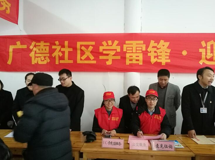 3月7日上午,公交公司党员参加了在广德社区举办的学雷锋·迎“三八”大型便民服务活动。主要是做好以下几方面工作:一是向社区居民免费发放《新版公交指南》、《公交车应急自救手册》、《礼让斑马线我先行,剿灭劣五类水同出力》等宣传册;二是向社区居民介绍公交线路优化调整情况和便民利民新举措,推广定制公交租赁服务,征集居民对公交线路优化调整的合理化意见建议;三是为居民现场办理和充值IC卡;四是帮助下载和使用杭州公交APP等。