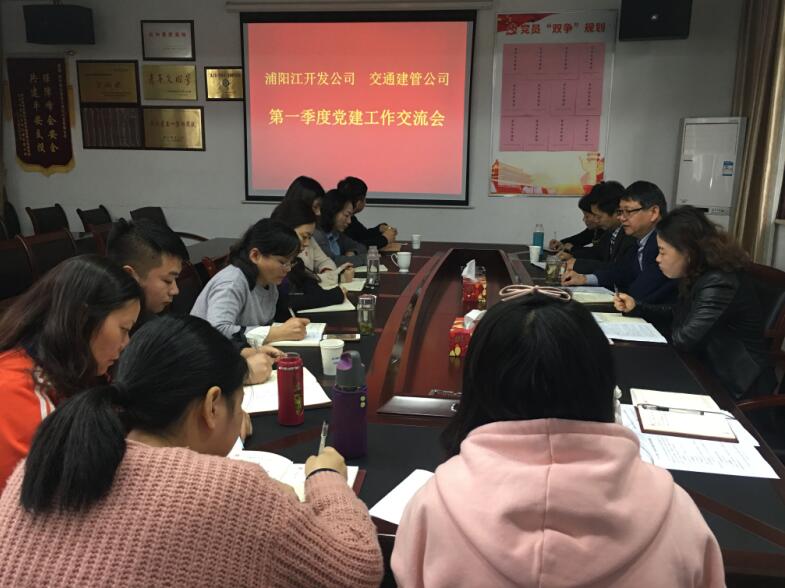 根据集团党委安排,2018年,浦阳江开发公司与交通建管公司党支部结对开展党建引领“阳光工程”品牌建设。为确保结对共建实效,3月14日下午,浦阳江开发公司与交通建管公司党支部开展了第一季度党建联席会议和工作交流会议。两家公司党员、入党积极分子参加会议,会议在浦阳江开发公司会议室召开。