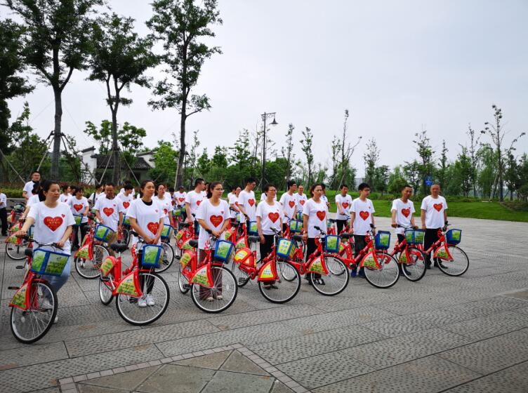 为庆祝中国公共自行车诞生10周年暨杭州市公共自行车系统营运服务10周年,5月1日上午,公交公司公共自行车管理部在湘湖定山广场举行了一场主题为“红动十年、筑梦前行、智慧生活、低碳出行”的骑行活动。萧山分会场与杭州主会场呼应,共同为中国公共自行车庆生。