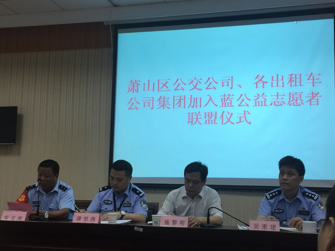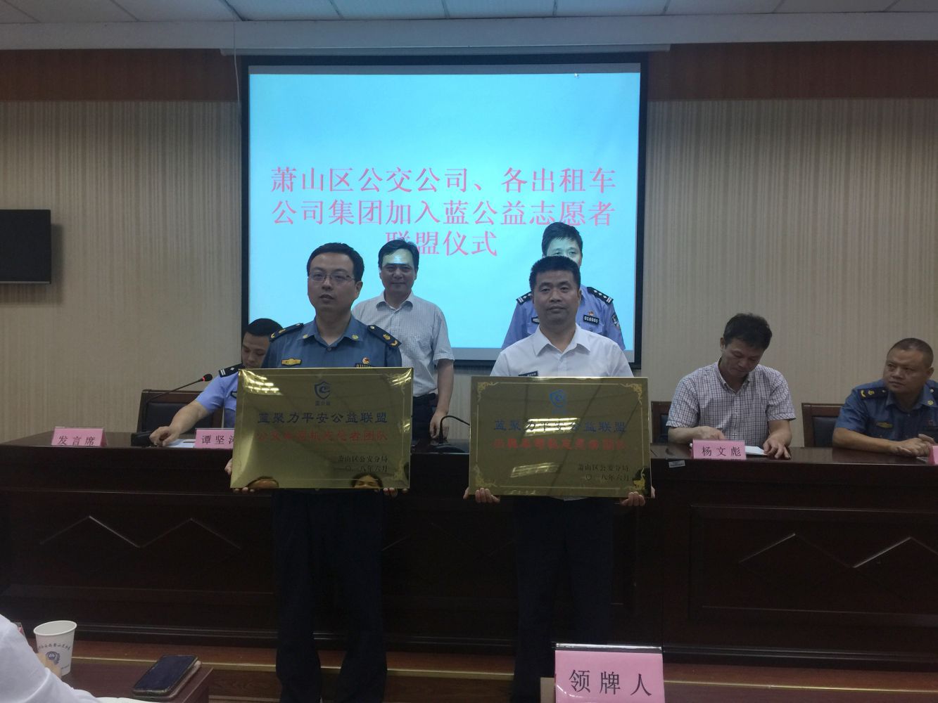 5月29日上午,萧山公交公司副总经理韩兴良带队各车队长及驾驶员代表参加了蓝公益志愿者联盟的授牌仪式。蓝公益全称为“蓝聚力”平安公益志愿者联盟,是由杭州市萧山区热爱社会公益事业、志愿参与平安萧山建设、参加社会治安防范工作的个人及关心、支持城市平安建设的企事业单位、社会组织自愿组成的全区性、联合性和非盈利性的团体组织。