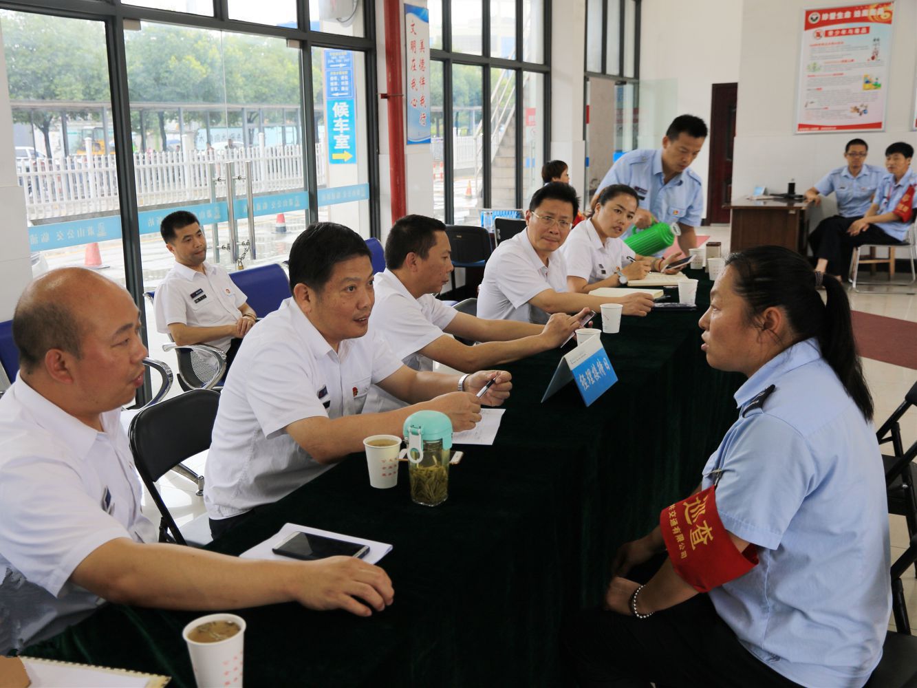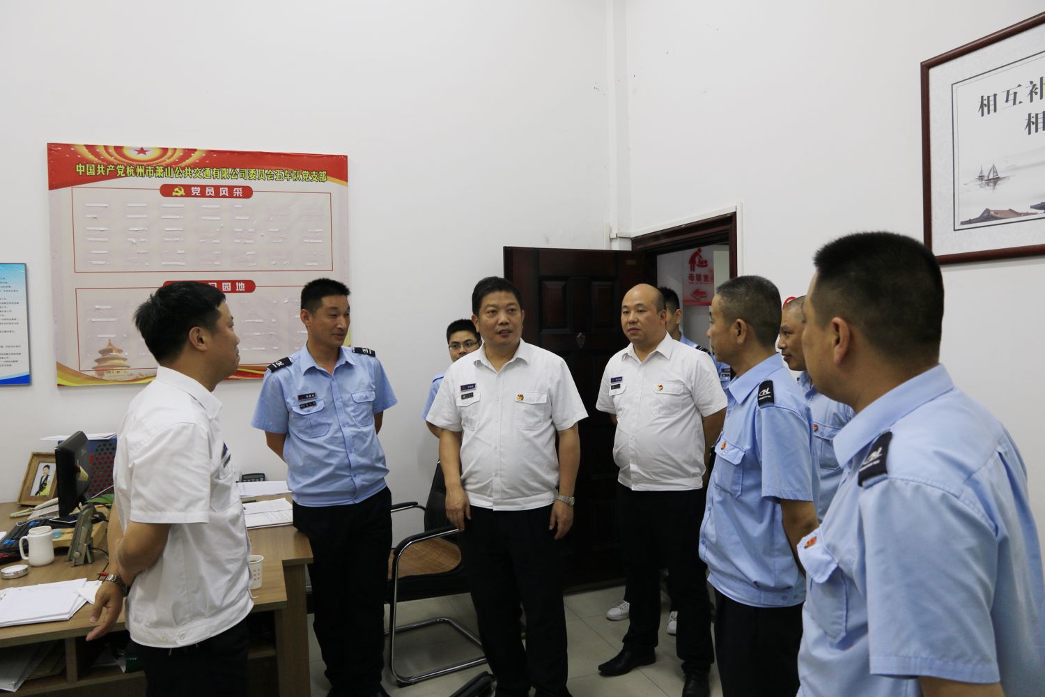 为进一步了解员工需求,听取合理化建议,提升企业管理水平,6月20日下午,公交公司吴根法总经理等全体班子成员、各相关职能部室、车队负责人冒雨前往临浦公交站开展“经理接待日”活动,现场与一线员工进行面对面的沟通交流,协调解决其工作生活中遇到的困难和问题。