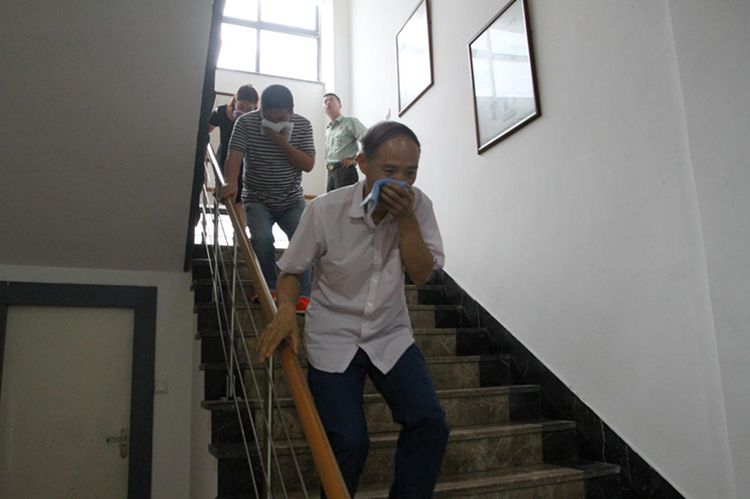 培训介绍公司三级防火责任人和消防安全管理人的职责,“四懂”、“四会”、“纲要”内容解释以及各类火灾发生的原因、火灾周期和灭火、逃生最好时段等内容。结合火灾现场视频、典型火灾案例的分析讲解,让员工再一次认识火灾所带来的伤害,一幕幕血的教训让人印象深刻。培训还对干粉灭火器原理和使用方法详细说明,为员工展示防毒面具、高空自救缓降器、水剂灭火器等消防设备,指导火灾逃生技巧和注意事项。随后,行政办公楼模拟二楼着火现场,宣教老师指挥工作人员紧急疏散,各楼层负责人根据预案引导大家用湿毛巾捂住口鼻,弯腰沿着安全出口路线有条不紊地撤离到安全地带。