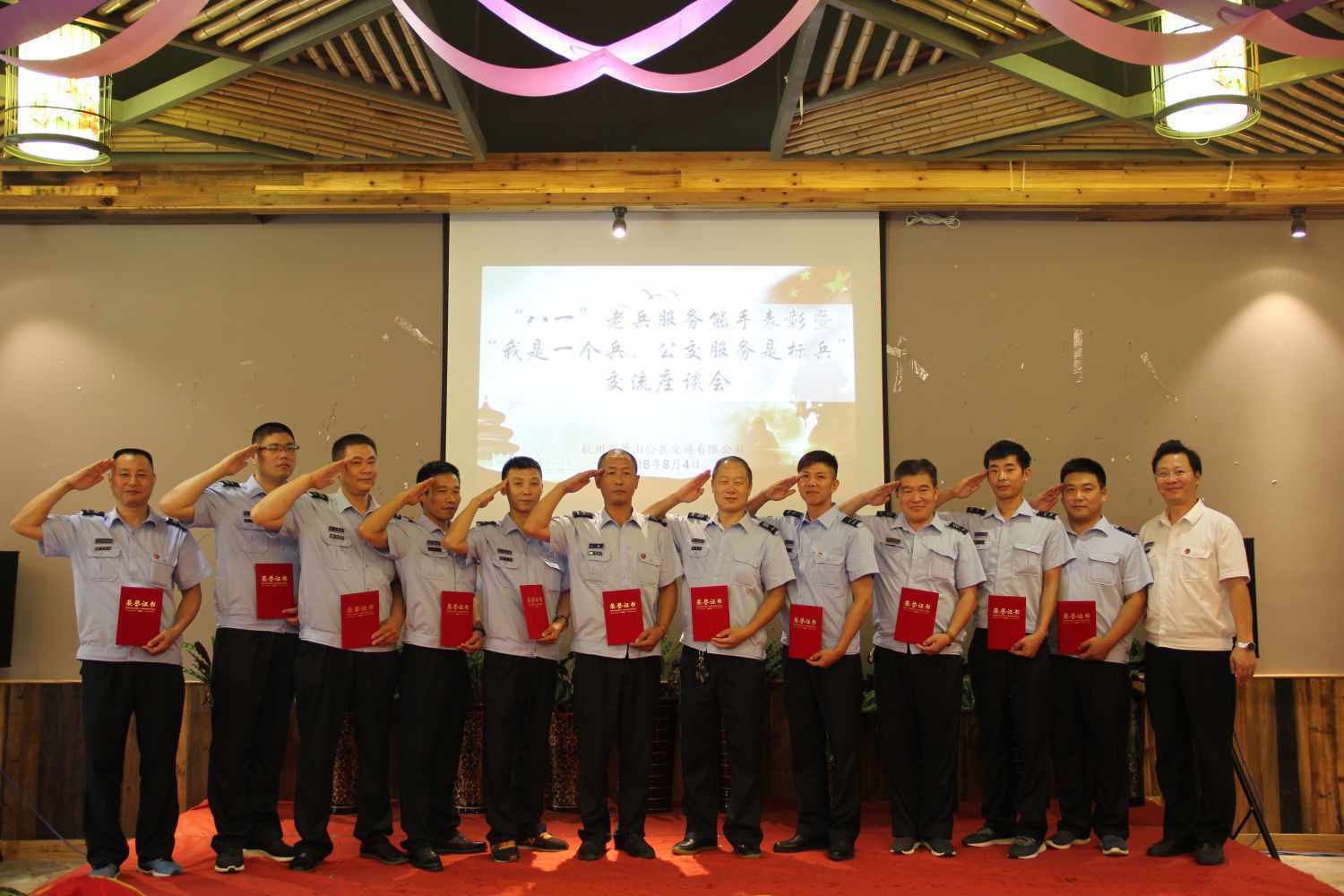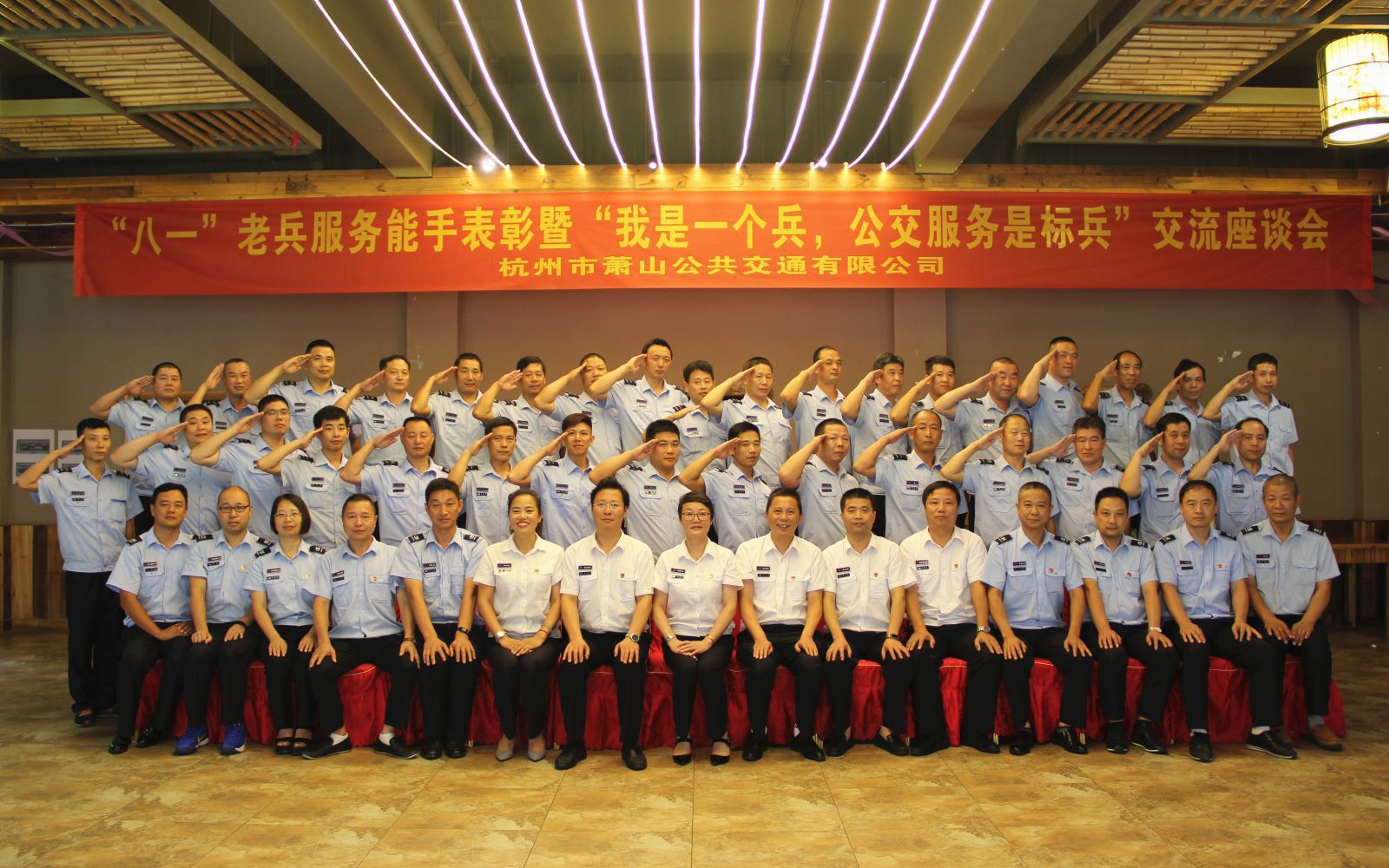 八一建军节之际,为充分发挥公司退伍老兵内在优势和示范带动作用,切实将退伍老兵凝聚到建设优秀公交的战斗中来,萧山公交公司于8月4日上午召开“八一”老兵服务能手表彰暨“我是一个兵,公交服务是标兵”交流座谈会议。公司班子领导、各分工会负责人、各车队“老兵服务能手”、老兵服务示范岗人员等共计50余人参加活动。