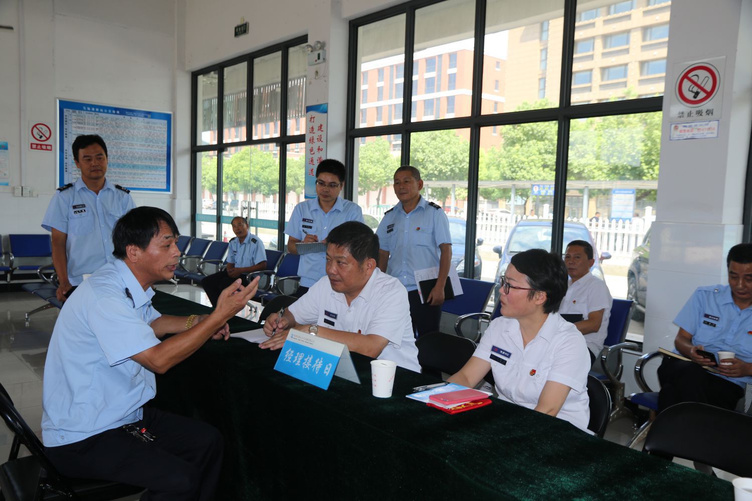 为进一步了解员工需求,听取合理化建议,提升企业管理水平,8月30日上午,公交公司董事长总经理吴根法、书记王黎洪等全体班子成员、各相关职能部室、车队负责人冒雨前往临浦公交站开展“经理接待日”活动,现场与一线员工进行面对面的沟通交流,协调解决其工作生活中遇到的困难和问题。