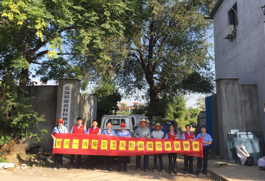 为感谢环卫工人的辛勤付出,9月28日上午,机场高速公司下属新街(互通)收费站的志愿者们,来到瓜沥镇建盈村垃圾中转站慰问一线环卫工人。