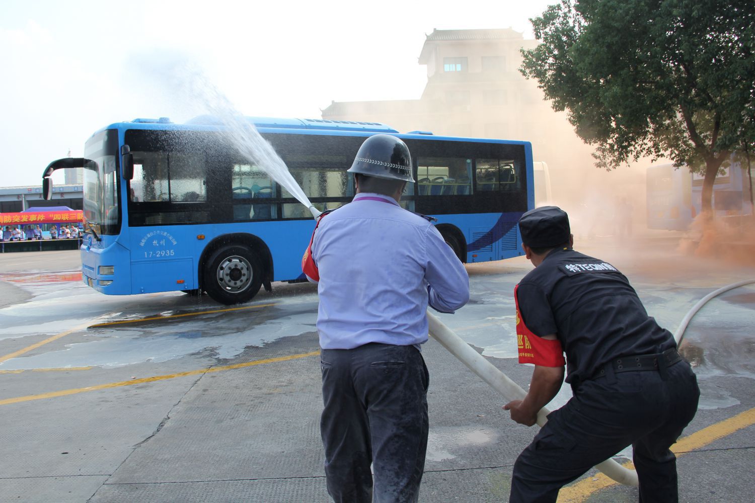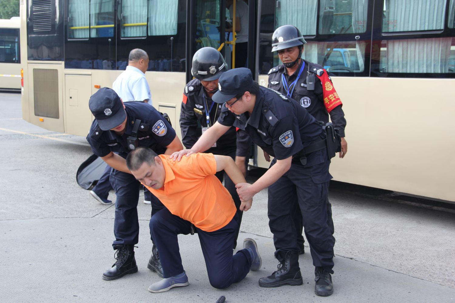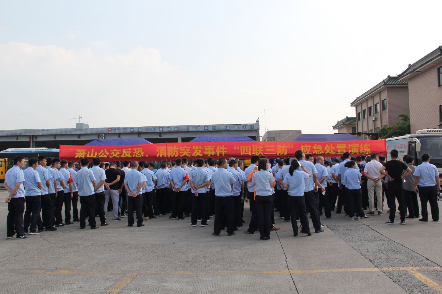 为强化公司各场站、各单位与公安机关和周边其他安保力量“联建、联防、联动、联控”能力,进一步提高公司“135快速反应圈”反恐怖防范和应急处置能力,增强全体员工消防、反恐意识及突发事件应急处置能力,9月29日下午公交公司在通惠路公交站举行反恐、消防突发事件“四联三防”应急处置演练,区交投集团、运输管理处、新塘派出所、交通治安派出所、反恐大队等领导及公司班子成员、各部门、各车队负责人、各巡防队伍、义务消防队伍等观摩了此次演练。