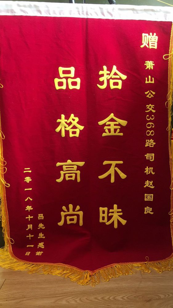 近日,萧山公交三车队驾驶员赵国良受到萧山电视台采访。原来,10月11日早上赵国良驾驶368路途经红门巷康顺路口时,发现斑马线上有一钱包,于是当即靠边停车,捡回钱包。经查,钱包内有大量现金、各类证件。考虑到可能是来医院看病的市民掉的,司机到站后立马上交给了车队管理人员,并通过派出所联系到了失主,领回了钱包。原来失主吕永涛正是前往浙二分院学习的医生,因当天上午手术紧急,一路小跑才不慎遗落钱包。吕先生对驾驶员这种拾金不昧、品格高尚的行为称赞不已,次日还特地送锦旗到车队以表示深深的感谢。
