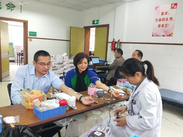 献血职工在工作人员的指导下,认真填写献血登记表、测量血压、抽血化验,经血液检验合格后向区献血中心无偿献血。据了解,公司此次前来献血的员工中,许多献血者已多次参加无偿献血活动,有的已是第四次、第五次献血,献血量早已超过1000CC。大家用实际行动,履行一个公民的光荣义务,表达着回馈社会、关爱社会的真挚情感和无私奉献精神。