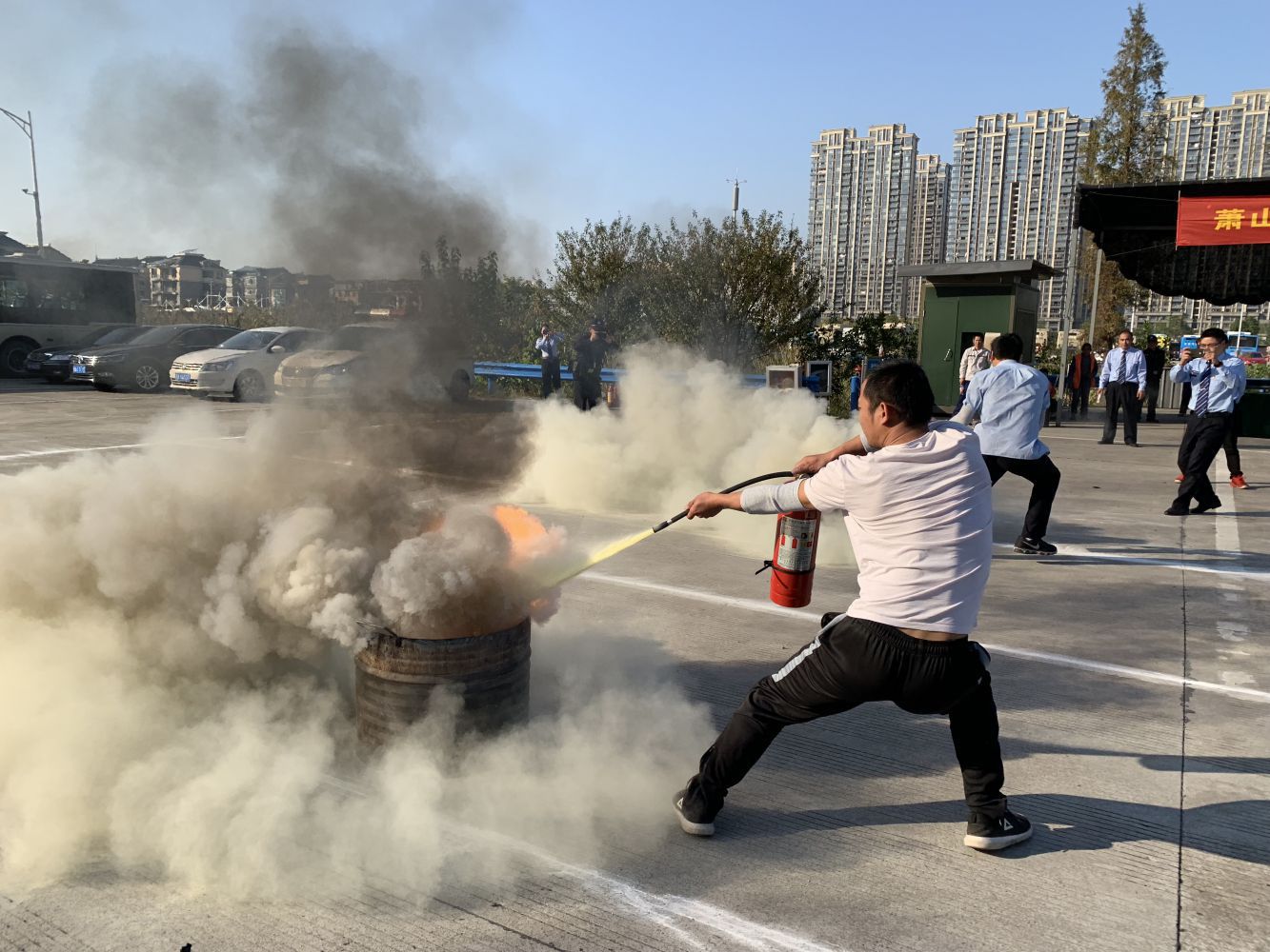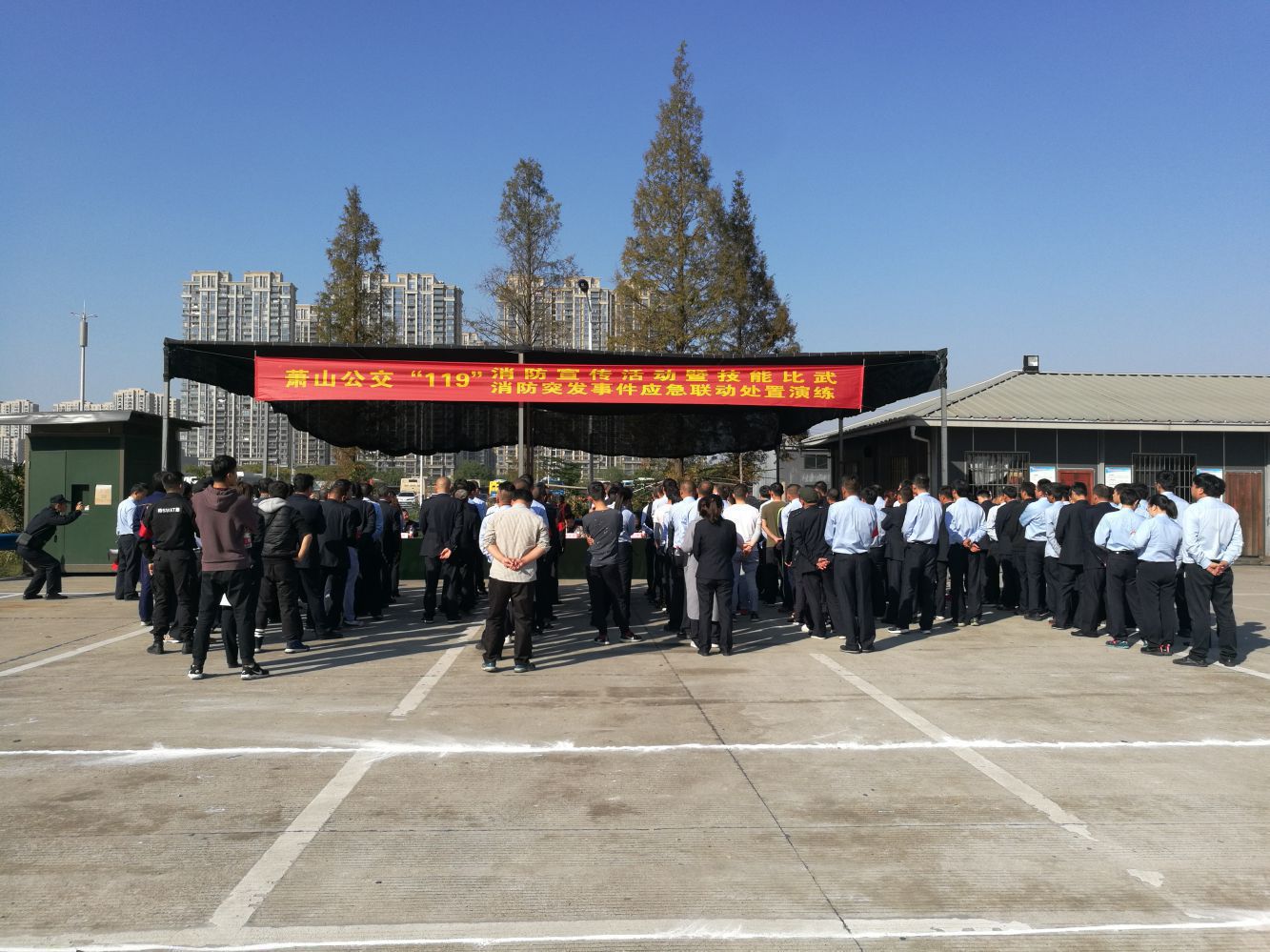 为认真贯彻全国第二个“消防月”及第28个全国“119消防日”宣传活动,进一步加强公司消防安全管理,深刻吸取近期国内、市区几起火灾事件教训,提高突发事件应急处置能力,并以“后峰会、前亚运”安全保障为标准,11月9日下午,萧山公交在城南停车场开展了“11.9”消防日宣传活动。公司班子领导、各单位相关负责人、一线员工代表参加观摩了消防日活动, 区交通运输局、区反恐大队、区运管处、区交通治安派出所、萧山电厂消防队的领导应邀莅临指导。