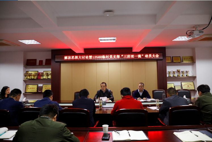 2018年11月15日晚,交通建管公司组织召开解放思想大讨论暨“12588”交通建设工程临时党支部“三好双一流”动员大会。公司党政班子全体成员、全体党员干部、“12588”临时党支部全体委员参加此次会议。党支部书记杨涌主持会议。